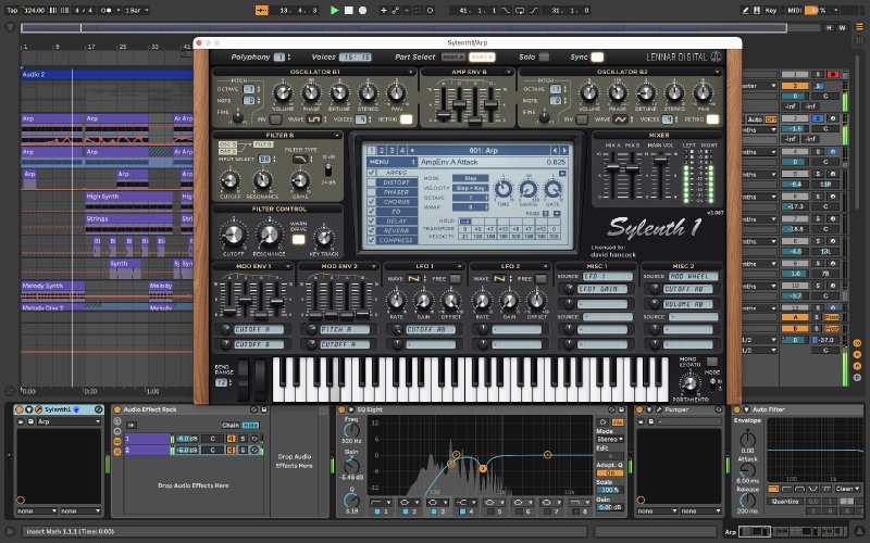 The brass type lead sound was made using the Patch 001 Arp in Sylenth. The Mod wheel controls filter cut off. Am using 'Pumper' for saturation along with 'Kickstart' for side-chain compression and normal EQ8, Reverb and Auto-filter. I can share screen shot and the complete chain with you. Hope this helps. Happy music making
