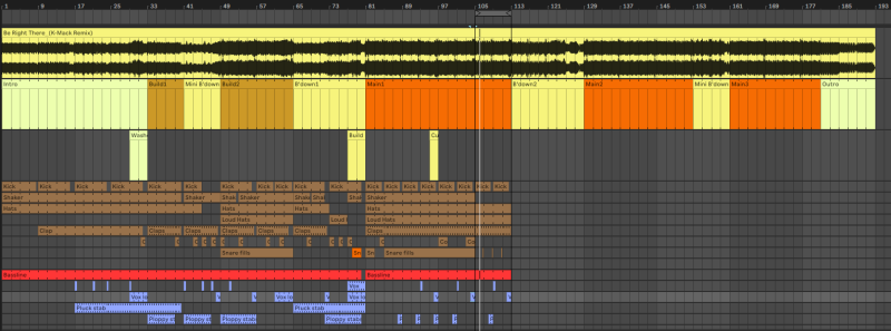 Finish creating all the main elements that will go into your track. If you’ve only got them all running in a loop, lay them out into the different sections of your arrangement map.