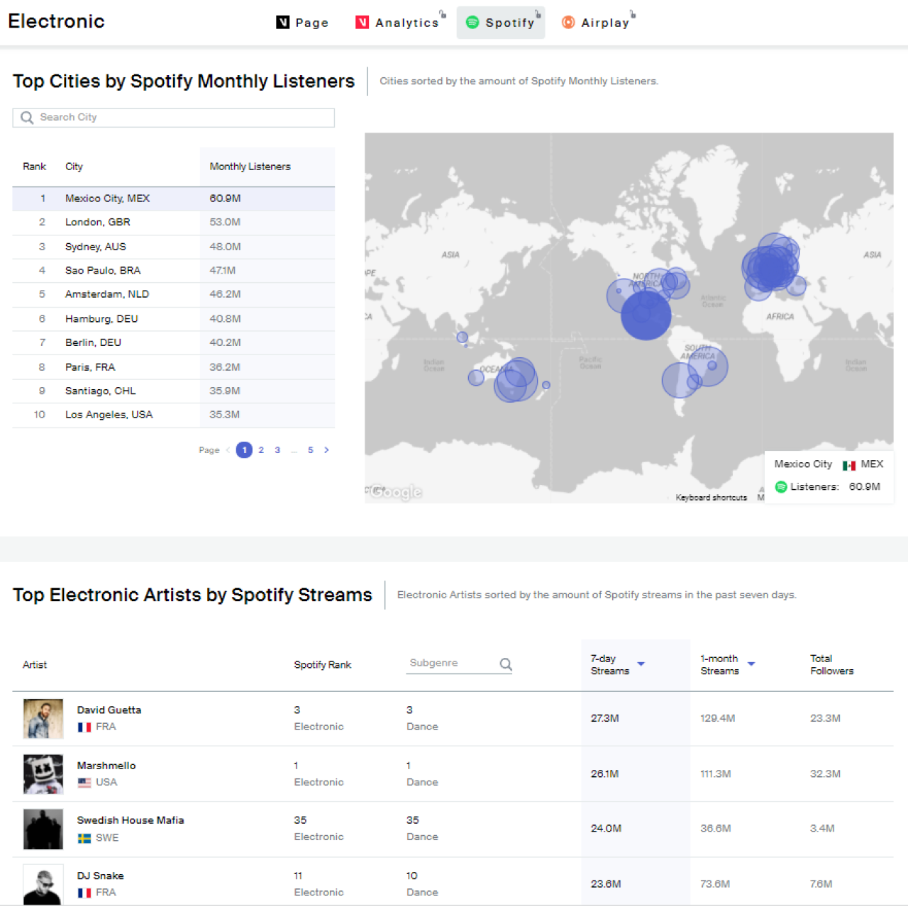 Even though it is a case of running before I can walk I would like to suss out the commercial dimensions of certain musical genres I might take an interest in. Is there a free resource that you know of that provide genre based analytics? Of course I know the Beatport top-100 with its current h-o-r-r-i-b-l-e number one at the time of this writing (California Dreamin' (feat. High Jinx) by Chris Lorenzo) : https://www.beatport.com/top-100